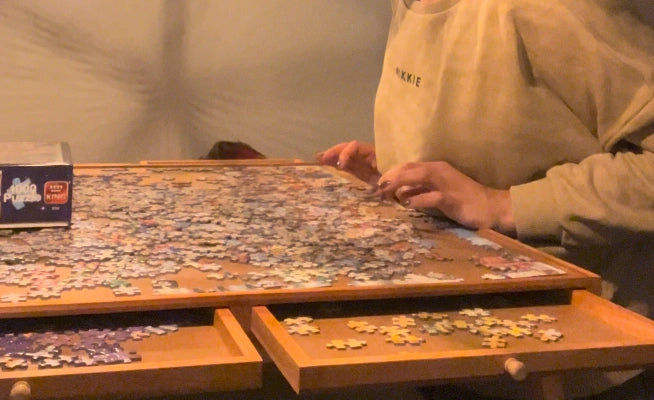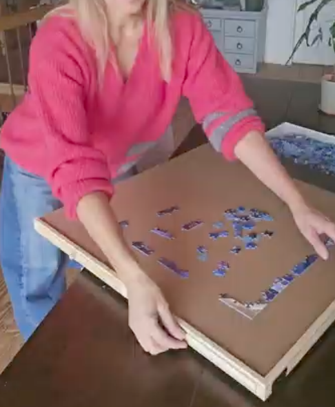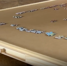"Ik hou van het handige opberggemak van deze tafel. De puzzel blijft veilig op zijn plaats!"