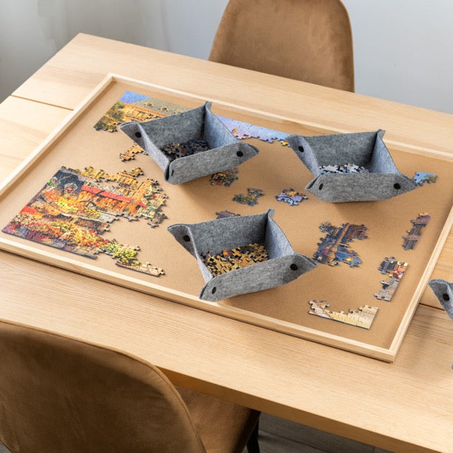 Ons puzzelbord onderscheidt zich door het stevige houten ontwerp en slimme functionaliteit. In tegenstelling tot andere borden biedt het optimale stabiliteit en gebruiksgemak voor elke puzzelliefhebber